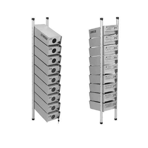 Caixas de correio tipo Colmeia para chumbar no muro, com entrada de cartas pela frente e retirada por trás, sendo uma caixa individual para cada apartamento, 2 cópia de chave para cada morador e identificação numérica. Proporciona segurança às entregas, mantém a correspondência organizada e ocupa pouco espaço — ideal para Prédios com salas comerciais e Condomínios.