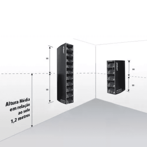 Obs; A montagem fica conforme o cliente achar melhor para o seu espaço, mínimo de 4 caixas por coluna.