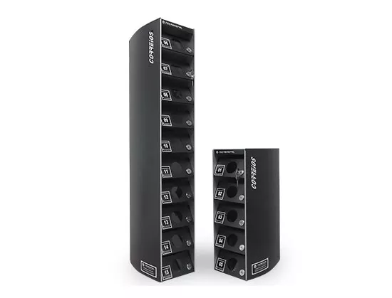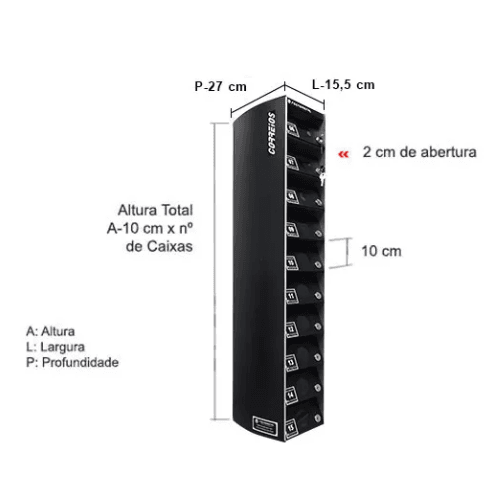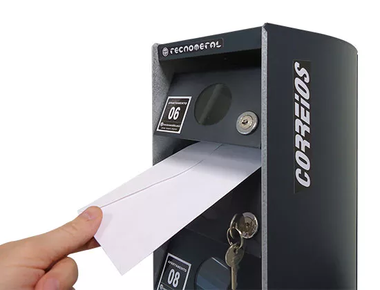 Caixas de correio Colmeia com uma caixa individual para cada apartamento, cada uma com chave própria e identificação numérica. Proporciona segurança às entregas, mantém a correspondência organizada e ocupa pouco espaço — ideal para Prédios com salas comerciais e Condomínios.