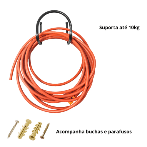 Suporta até 10 kg, ideal para organizar mangueiras de jardim ou uso leve de oficina.